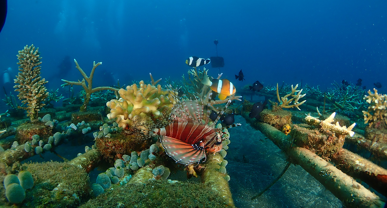 Reeformers has 3,000 resilient corals growing on 133 artificial reefs at Reeformers Reef's site in Indo Pacific Ocean, North Sulawesi, Indonesia.